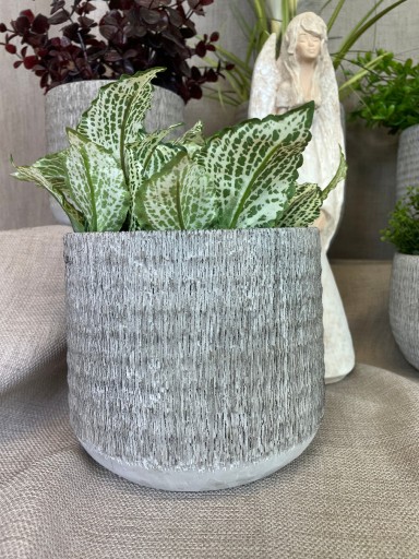 Osłonka betonowa w szarym kolorze przecierana. Idealnie wkomponuje się we wnętrze w stylu glamour jak i nowoczesne. Osłonka ozdobi biuro, salon czy taras.