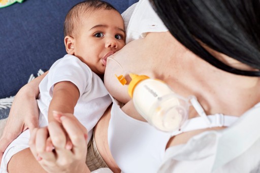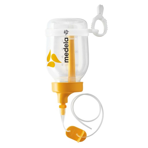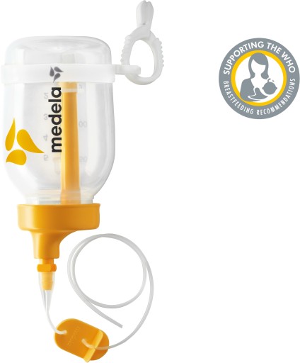 System wspomagający karmienie marki MEDELA SNS 2.0 to urządzenie wspomagające laktację, składające się z bezpiecznie przypiętego do ramiączka biustonosza, koszulki lub poduszki pojemnika wypełnionego dodatkowym mlekiem. Gdy dziecko jest przystawiane do piersi/klatki piersiowej, obok brodawki znajduje się cienka, elastyczna rurka, którą niemowlę bierze do ust. Zapewnia ona kontrolowany i stały przepływ mleka podczas karmienia.