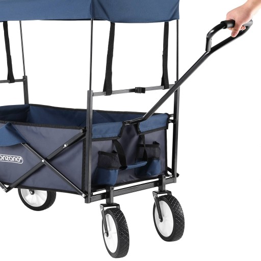 Składany wózek festiwalowy ze zdejmowanym dachem może być różnorodnie używany. Korzystaj z płynnie jeżdżącego wózka do kupowania, rodzinnej wycieczki lub jako nośnik w swoim ogrodzie.