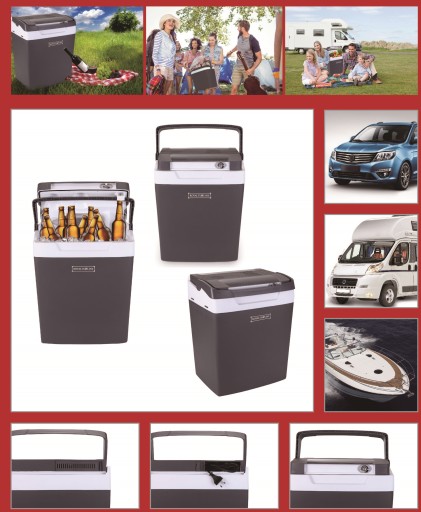 Stworzona dla podróżników, którzy nawet na biwaku cenią sobie chłodzące napoje. Duża komora chłodząca mieści aż 30l.Dzięki specjalnej izolacji termicznej obudowy może utrzymywać temperaturę w komorze chłodzenia. Użytkownik może podłączyć ją zarówno do sieci elektrycznej 230 V (uzyskując moc chłodzenia 58 W) jak i samochodowego gniazdka zapalniczki 12 V (moc 48 W). Dla ułatwienia została zainstalowana rączka, którą można schować w pokrywie lodówki. Po zamknięciu, lodówka turystyczna staje się wygodną walizką, zarówno estetyczną jak i wygodną w noszeniu.