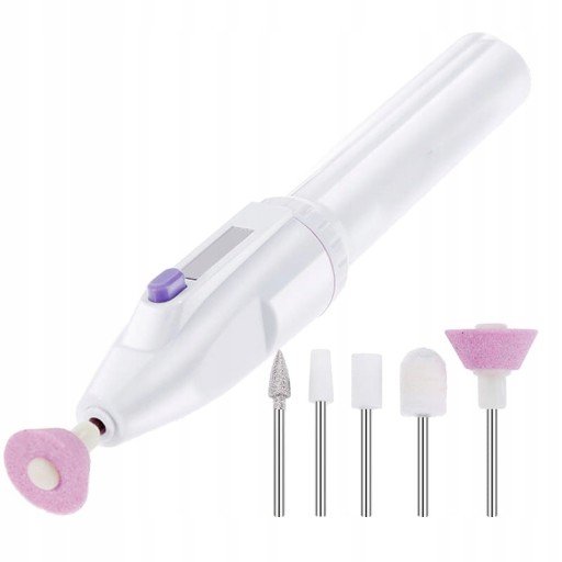 - 5 frezów: frez do usuwania naskórka, frez do usuwania skórek, frez do skracania i nadawania kształtu, frez do wygładzania powierzchni, frez do polerowania