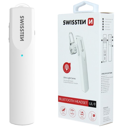 ✅ Zestaw słuchawkowy BLUETOOTH HEADSET SWISSTEN ULTRA LIGHT UL-9 WHITE