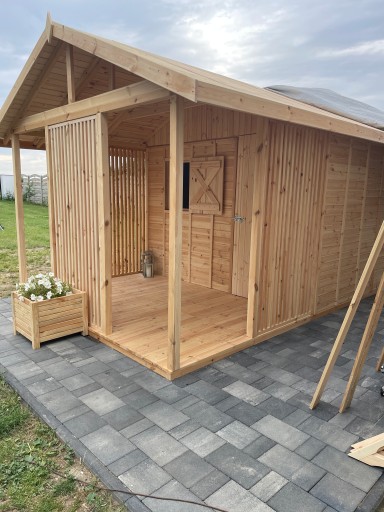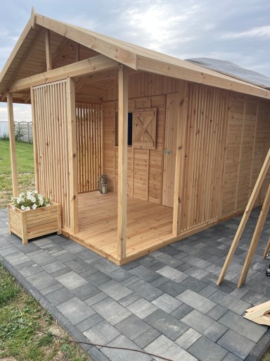 Domek letniskowy o podstawie 6x3m. Dach dwuspadowy. Powierzchnia do zamieszkania 3x3 m, taras 3x3m . lub w wersji domek o podstawie 6x3m, powierzchnia do zamieszkania 4x3m, tars 2x3m .Deski ścian łączone metodą na pióro i wpust. Konstrukcja domku umożliwia klientowi samodzielne ocieplenie od wewnątrz dzięki konstrukcji szkielowej domku. Konstrukcja umożliwia samodzielny montaż ( gotowe moduły)