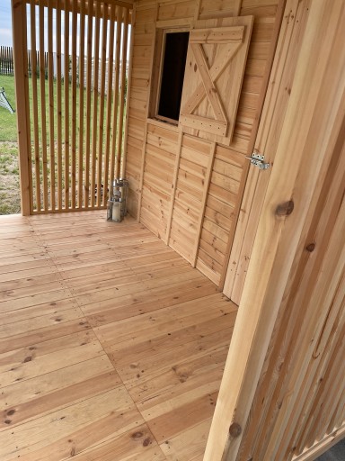 Deski ścian łączone metodą na pióro i wpust. Konstrukcja domku umożliwia klientowi samodzielne ocieplenie od wewnątrz dzięki konstrukcji szkieletowej. Konstrukcja umożliwia samodzielny montaż (gotowe moduły)