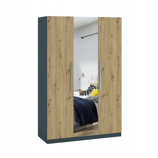 Szafa trzydrzwiowa z lustrem Barletta antracyt z frontami dąb artisan