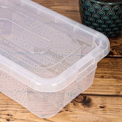 Estetyczny wygląd w kolorze przezroczystym sprawia, że pojemnik pasuje do każdego wnętrza, dodając elegancji i harmonii. Ponadto, przezroczystość pozwala szybko zlokalizować potrzebne przedmioty bez konieczności otwierania pojemnika, co oszczędza czas i ułatwia organizację.
