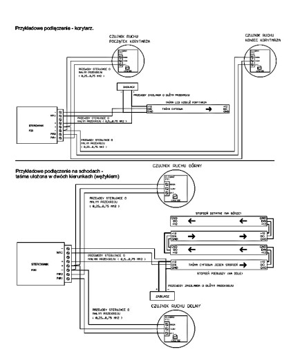 Sterownik może również pracować w trybie korytarzowym. W zależności z której strony korytarza będziemy wchodzili sterownik wyzwoli efekt rozwijanej linii świetlnej.
