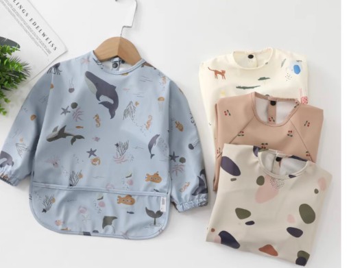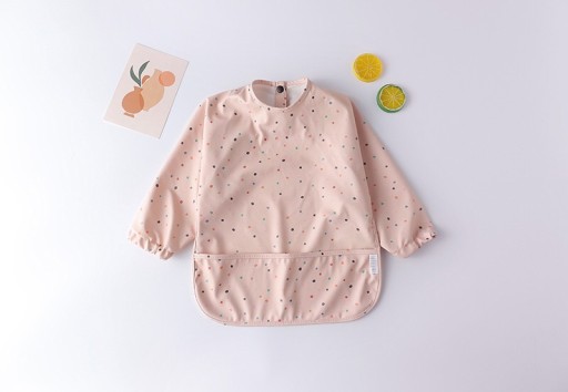 Całość zachowana w stonowanych kolorach i eleganckim wykonaniu. Skutecznie ochroni ubranie dziecka przed zabrudzeniem. Śliniak jest łatwy w utrzymaniu czystości, wystarczy po posiłku przetrzeć go wilgotną szmatką.