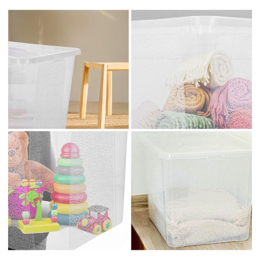 Estetyczny wygląd w kolorze przezroczystym sprawia, że pojemnik pasuje do każdego wnętrza, dodając elegancji i harmonii. Przezroczystość pozwala szybko zlokalizować potrzebne przedmioty bez konieczności otwierania go, co oszczędza czas i ułatwia organizację.
