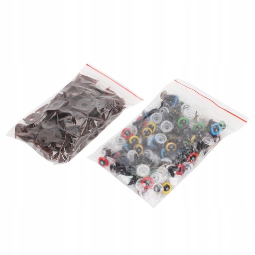 - 100 x oczka ochronne (16 x brązowe, 14 x żółte, 14 x zielone, 14 x niebieskie, 14 x przezroczyste, 14 x czerwone, 14 x złote)