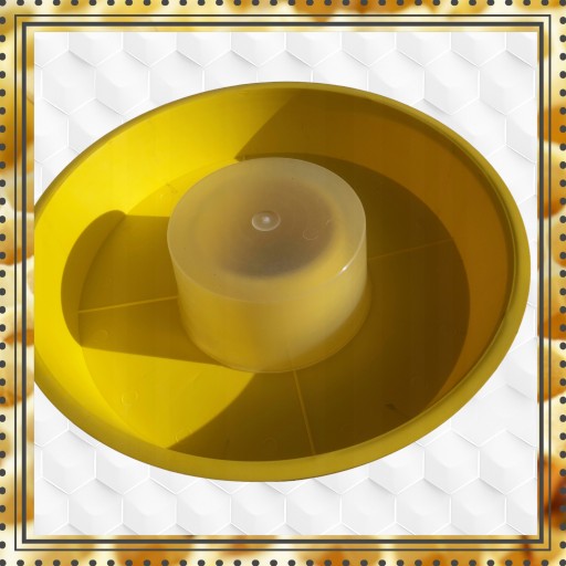 ❇️Otwór na środku misy ma ryflowany kołnierz o wysokości 6,5 cm. Ryflowana powierzchnia kołnierza ułatwia pszczołom poruszanie się po pionowych ściankach, by mogły łatwo i bezpiecznie dotrzeć do pokarmu. Kołpak wykonany z bardziej elastycznego tworzywa niż wcześniejsze modele podkarmiaczek, nie łamie się i nie pęka, co zapewnia długą żywotność produktu.
