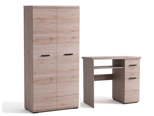 ZESTAW MEBLI KAR MIX wykonany z wysokiej jakości płyty laminowanej o grubości 18mm. Całość oklejona okleiną typu ABS. Uroku całości dodają uchwyty w kolorze czarnym .Mebel wspaniale pasuje do każdego pomieszczenia.
