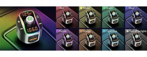 Transmiter FM posiada możliwość zmiany koloru podświetlenia, dzięki czemu sam decydujesz na jaki kolor ma się podświetlać urządzenie.