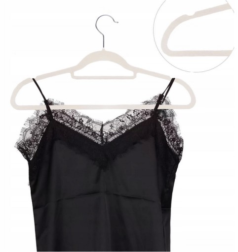 Dzięki profilowanym wcięciom na wieszaku powiesisz wszystkie ubrania z cienkimi ramiączkami bez obawy, że spadną.