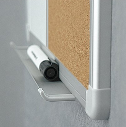 Tablica posiada również ukryte mocowania do ściany. Półka 30 cm z zaślepkami służy do przechowywania różnego rodzaju akcesoriów jak markery czy gąbka