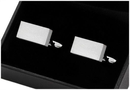 Wysokiej jakości spinki do mankietów zapakowane w pudełko prezentowe.
