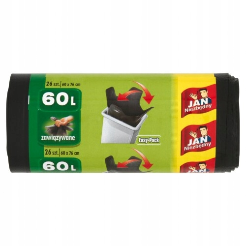 Posiadają specjalne "uszy", które można zawiązywać, co ułatwia przenoszenie worka I zapobiega wypadaniu śmieci, - wykonane są z czarnego, moletowanego materiału HDPE.Marka Jan Niezbędny została wprowadzona na rynek w 2000 roku, a produkty bardzo szybko zyskały uznanie i akceptację konsumentów. Marka oferuje szeroką gamę artykułów gospodarstwa domowego. Obecnie Jan Niezbędny ma niekwestionowaną pozycję lidera na polskim rynku.