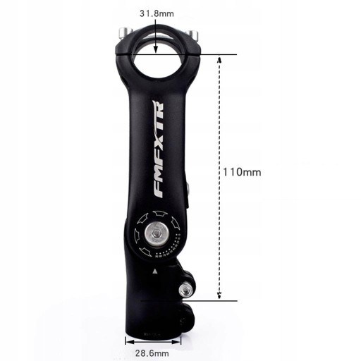 Średnica sterowej: 286mm (1-1/8"), średnica okręgu: 254mm/(0-1"); 318mm (1-1/4"), długość: 90mm/110mm, stopień: regulacja 0-90°