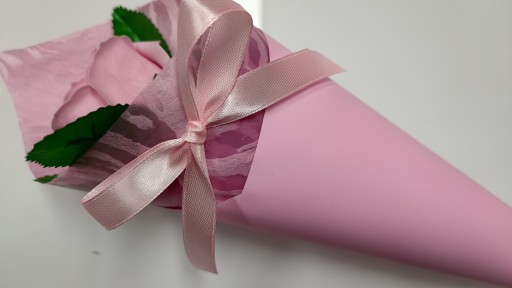 Róża mydlana w rożku to znakomity prezent dla nauczyciela, na imieniny, urodziny, walentynki, dzień kobiet...który sprawi obdarowanej osobie mnóstwo pachnącej radości...