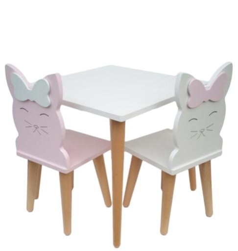 Stolik z dwoma krzesełkami kot kotek kokarda, 50/50