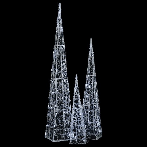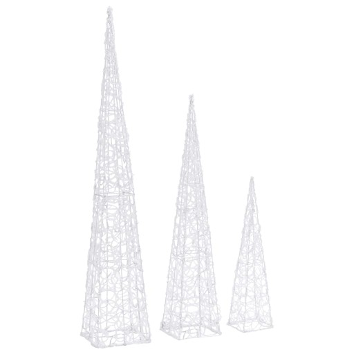 ZESTAW STOŻKÓW DEKORACYJNYCH Z ZIMNYM BIAŁYM LED 60/90/120CM