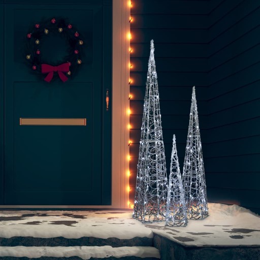 Dzięki temu zestawowi stożków z oświetleniem LED możesz stworzyć przytulną, świąteczną atmosferę na czas świąt Bożego Narodzenia, zarówno w pomieszczeniach, jak i na zewnątrz.