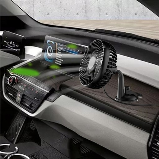 - Można obracać o 360 stopni, dzięki czemu wentylator jest niezwykle wygodny. Odpowiedni dla większej liczby osób. Supersilny wiatr wydmuchuje gorące powietrze z samochodu, natychmiast ochładzając kierowcę i trasy.