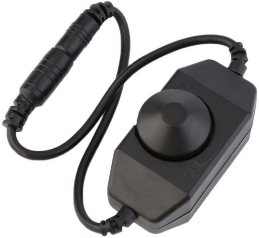 Ściemniacz oświetlenia umożliwia płynną regulację jasności jednokolorowych taśm LED. Posiada wbudowany potencjometr z wyłącznikiem, umożliwiający całkowite wyłączenie oświetlenia LED.