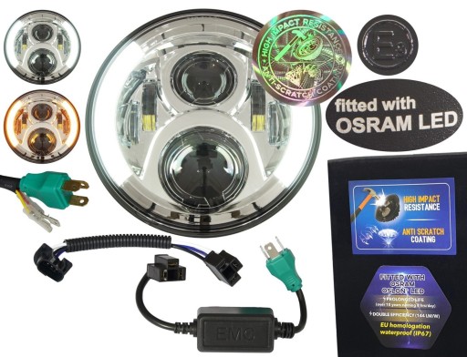 lampa LED chipy OSRAM 7 cali reflektor DRL chrom