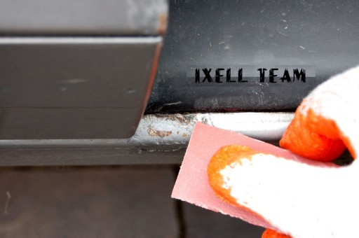 Naprawiane miejsce oczyszczamy załączonym do zestawu papierem ściernym. Usuwamy luźne części lakieru oraz rdzę.