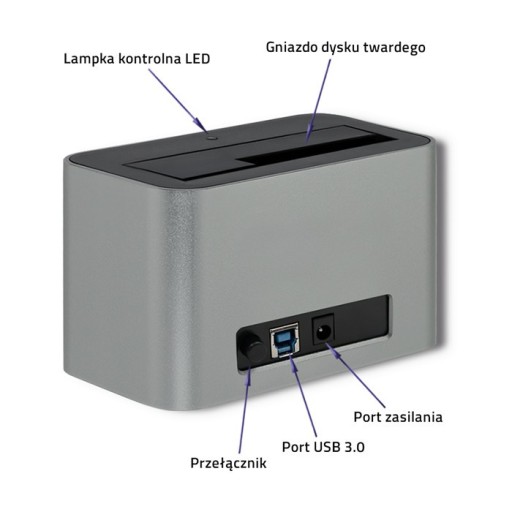 - Obsługuje również USB 3.0 do 5Gbps 2.5" i 3.5" oraz standard SATA I/II/III