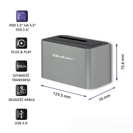 Stacja dokująca dysków Qoltec HDD/SSD 2.5"/3.5" SATA ➡️ USB 3.0 ⬅️