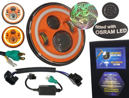 lampa DRL LED chipy OSRAM 7 reflektor pomarańczowy