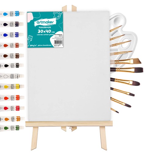 ✅ W zestawie upominkowym znajdziesz wszystko co niezbędne do stworzenia własnego obrazu - sztalugę, farby, pędzelki, płótna i paletkę.