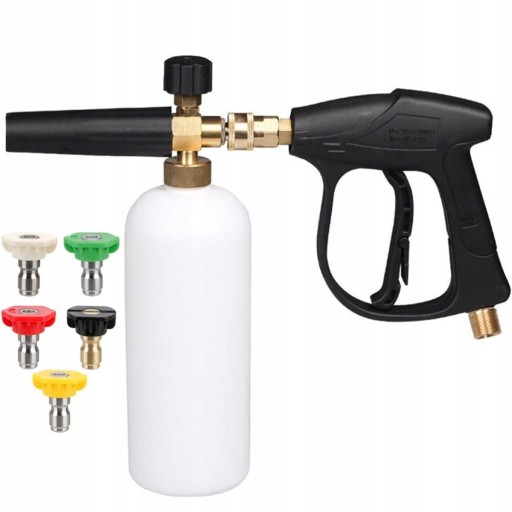 💦【Profesjonalny pistolet do piany do myjni samochodowej】: Zawiera: 1 x pistolet do myjki ciśnieniowej; 1 x wyrzutnia piany śnieżnej (1 litr / 0,22 galona); 5 * końcówki dyszy.