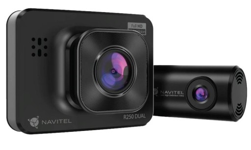 NAVITEL R250 DUAL to kompaktowy wideorejestrator wyposażony w dodatkową kamerę tylną.