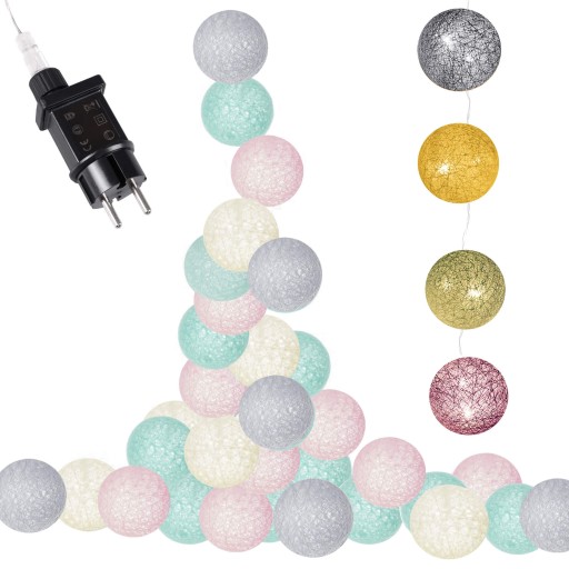Cotton balls to najmodniejszy dodatek oświetleniowy do wnętrz! Bawełniane nici pięknie owleczone na kulach idealnie dokończą tworzącą się arażację wnętrza. Wysokiej jakości produkt zadowoli nawet najbardziej wymagających, a podczas odwiedzin gości każdy będzie nim zachwycony. Bardzo dużym atutem tych lampek jest zasilanie sieciowe.