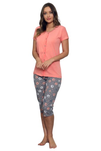 PIZAMA DAMSKA CAŁA ROZPINANA KROTKI RĘKAW 3/4 SPODNIE BAWEŁNA