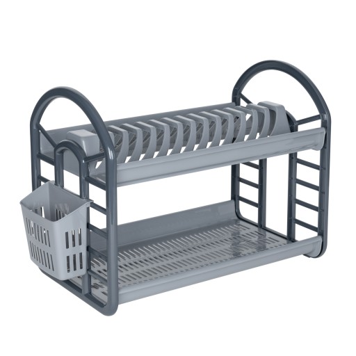 Dwupoziomowa suszarka do naczyń, która pozwoli na zmieszczenie większej ilości talerzy, szklanek i sztućców. Całość wykonana z trwałego tworzywa sztucznego, odpornego na uszkodzenia i wilgoć. Suszarka posiada zintegrowane z całością dwa ociekacze na sztućce.