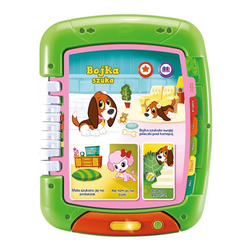 Czytaj i ucz się z tym tabletem 2 w 1! Zabawka zawiera aż 6 dwustronnych stron opowiadań i zadań. Wysłuchaj 6 przygód o szczeniaczkach lub zagraj w gry.