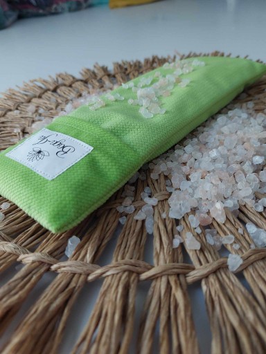 Poduszeczka wypełniona jest solą kamienną pochodzącą z Kopalni Soli „Kłodowa”. Surowiec ten stanowi źródło wielu niezbędnych dla zdrowia minerałów. Swój różowy kolor zawdzięcza obecności żelaza. Posiada właściwości przeciwbakteryjne i przeciwzapalne, oraz wykazuje działanie odtruwające, oczyszczające i przeciwbólowe.