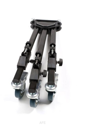 Najwyższej jakości profesjonalny wózek do statywów video pozwala na równomierne przemieszczanie kamery na statywie podczas filmowania. Po jego zamontowaniu statyw staje się znacznie stabilniejszy oraz wyższy. Wózek idealnie nadaje również mobilność statywom oświetleniowym w studiu fotograficznym.