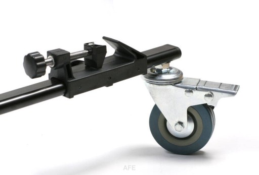 W razie potrzeby każde kółko można indywidualnie zablokować hamulcem. Blokada nóg na wózku odbywa się za pomocą zacisków — bardzo dokładnych i trwałych. Duża stabilność sprawia, że wózek znakomicie nadaje się do dużych, masywnych statywów — dzięki niemu stają się one mobilne i łatwiejsze w użyciu.