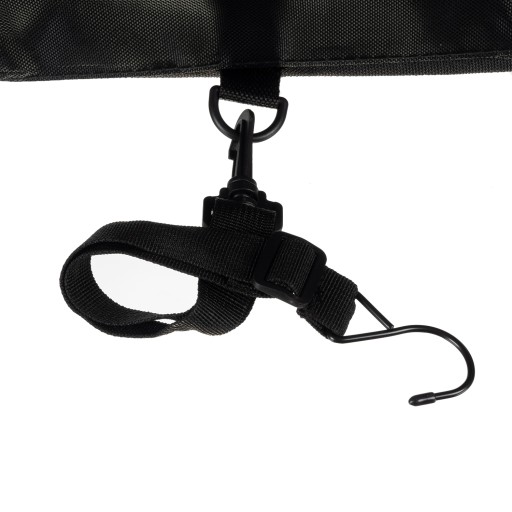 Do organizera zostały dołączone zaczepy z hakami na końcu. Przyczepiane na karabińczyki z regulowaną długością.