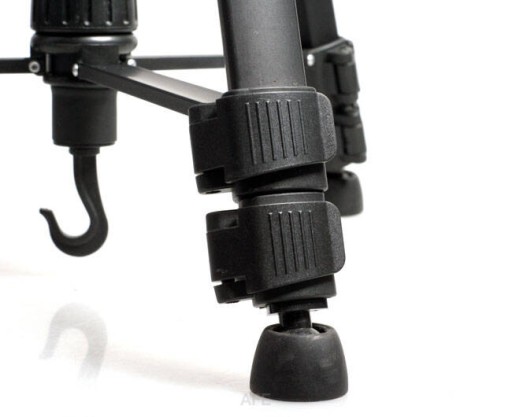 Solidna rękojeść nadaje większą mobilność dla statywu. Zamontowany na stałe hak pozwala na zawieszenie dodatkowego balastu i zwiększenie ciężkości zestawu (ważne przy montowaniu bardzo ciężkich kamer video). Widoczny nad hakiem obrotowy element pozwala na zablokowanie rozstawu statywu w dowolnym punkcie (dzięki czemu wysokość statywu można powiększyć dodatkowo o około 10 cm).