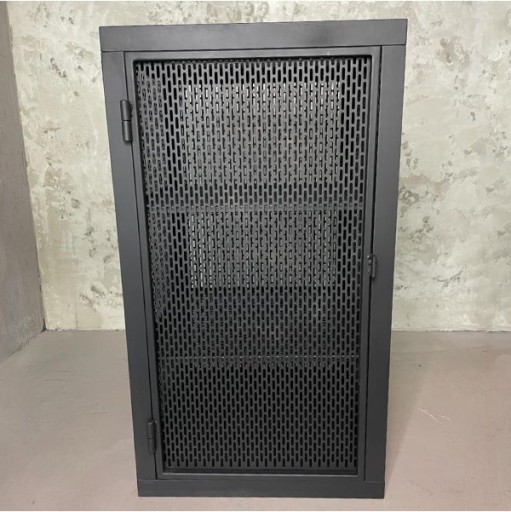 Hairless Horseman Regał Fryzjerski Duży – Blacha z Wyciętymi Oczkami, o wymiarach 100cmx50cmx50cm, to wyjątkowy i nowoczesny element do przechowywania akcesoriów fryzjerskich. Wykonany z solidnej blachy o kolorze czarnym, ten regał wyróżnia się unikalnym wzorem w postaci wyciętych oczek, które dodają mu stylowego i industrialnego charakteru.