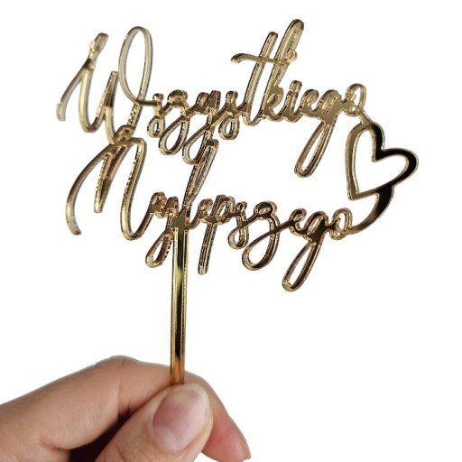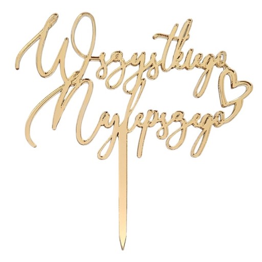 Złoty lustrzany mini piker z napisem "Wszystkiego najlepszego" to wyjątkowy dodatek, który wspaniale uzupełni każde przyjęcie okolicznościowe.