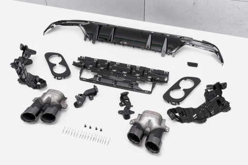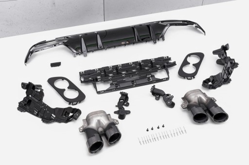 Zestaw stylizujący zaprojektowany został w stylu charakterystycznym dla samochodów z linii AMG. Prawdziwym atutem zestawu, są sportowe końcówki wydechu wykonane ze stali nierdzewnej. Dyfuzor i ozdobne końcówki wydechu wykonano z najwyższej jakości tworzywa motoryzacyjnego w kolorze Piano Black. Zestaw zachwyca sportowym charakterem, a połysk czarnych elementów dodaje mu elegancji - dzięki czemu doskonale współgra z imponującym designem MERCEDESA C-CLASS.