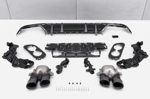 Zestaw stylizujący zaprojektowany został w stylu charakterystycznym dla samochodów z linii AMG. Prawdziwym atutem zestawu, są sportowe końcówki wydechu wykonane ze stali nierdzewnej. Dyfuzor i ozdobne końcówki wydechu wykonano z najwyższej jakości tworzywa motoryzacyjnego w kolorze Piano Black. Zestaw zachwyca sportowym charakterem, a połysk czarnych elementów dodaje mu elegancji - dzięki czemu doskonale współgra z imponującym designem MERCEDESA C-CLASS.