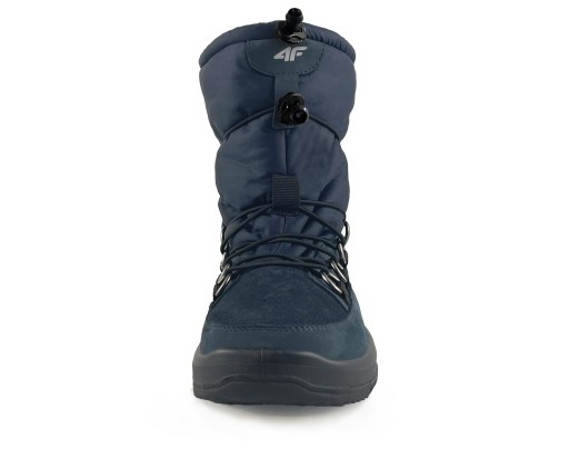 Model OBDH264 to wygodne śniegowce damskie polskiej marki 4F. Uwagę przyciąga cholewka wykonana ze skóry naturalnej, nubukowej w szarym kolorze połączona z wysokojakościową tkaniną. Wewnątrz buty wykończone są bardzo miękkim i ciepłym "miśkiem" obuwniczym. U góry zabezpieczone przed wpadaniem śniegu elastycznym ściągaczem. Śniegowce wyposażone zostały w technologię ocieplającą Thinsulate 3M gwarantującą zachowanie suchości i izolację od czynników zewnętrznych.